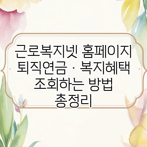 퇴직연금과 복지혜택은 많은 근로자에게 중요한 주제입니다. 근로복지넷 홈페이지는 이러한 정보를 쉽게 조회할 수 있는 유용한 플랫폼입니다. 여기서 퇴직연금 조회 방법, 복지혜택 확인 절차, 그리고 근로복지 혜택을 최대한 활용하는 방법을 알아보겠습니다. 이 글을 통해 근로복지넷 활용법을 이해하고, 여러분이 받을 수 있는 다양한 혜택을 누리세요.