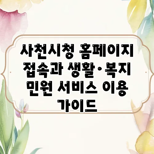 안녕하세요! 오늘은 사천시청 홈페이지 접속과 함께 생활 및 복지 민원 서비스를 이용하는 방법에 대해 알아보겠습니다. 처음 접속할 때는 다소 복잡할 수 있지만, 조금씩 천천히 따라오신다면 문제없이 이용하실 수 있을 것입니다. 사천시는 다양한 생활 복지 민원 서비스를 제공하고 있으며, 이를 통해 시민들에게 필요한 지원과 정보를 제공하고 있습니다. 전자 민원 서비스로 쉽게 민원을 해결할 수 있는 방법에 대해 깊이 있게 설명해드리겠습니다.