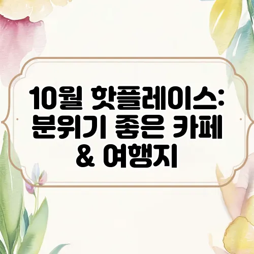10월이 되고 가을의 절정이 다가오면서, 누구나 즐기고 싶어하는 분위기 좋은 카페와 여름에 비해 한결 조용해진 여행지들에 대한 기대감이 커집니다. 오늘은 10월 카페 추천은 물론, 가을에 딱 어울리는 여행지와 데이트 장소를 함께 소개해 드리겠습니다. 따뜻한 커피 한 잔과 함께, 가을의 정취를 만끽할 수 있는 시간을 만들어 보아요.
