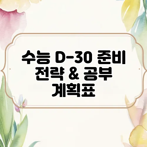 안녕하세요! 수능 D-30, 많은 분들이 긴장되는 이 시점이죠. 이제 얼마 남지 않았으니, 효과적인 수능 준비 전략을 세우고 최선을 다해야 할 때입니다. 이 포스트에서는 D-30 준비 전략과 수능 공부 계획표, 그리고 도움이 될 수능 학습 팁을 제시할 예정입니다. 마지막 스퍼트를 위한 준비 과정에 필요한 모든 정보를 담아내도록 하겠습니다. 함께 준비해 보아요!