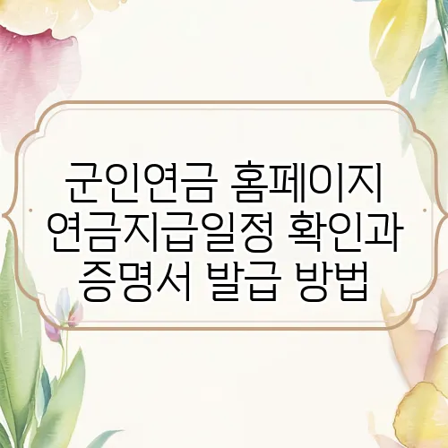 군인연금은 많은 군인과 그 가족들에게 안정적인 재정적 지원을 제공합니다. 하지만 그 혜택을 제대로 활용하기 위해서는 연금지급일정과 필요한 증명서 발급 방법을 정확히 아는 것이 중요합니다. 이번 포스트에서는 군인연금 홈페이지에서 확인할 수 있는 연금지급일정과 증명서 발급 방법에 대해 자세히 알아보도록 하겠습니다. 이를 통해 필요한 정보를 쉽게 찾고 빠르게 신청할 수 있게 도와드릴게요.