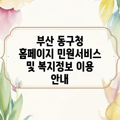 부산 동구청 민원서비스는 주민들이 필요로 하는 다양한 행정 서비스를 온라인으로 제공하는 시스템입니다. 주민등록, 가족관계증명서 발급, 각종 신고 및 요청 업무를 포함합니다.
