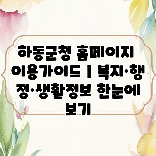 하동군청 홈페이지는 이용자 친화적으로 설계되어 있으며, 복지와 행정, 생활정보를 쉽게 찾을 수 있도록 구성되어 있습니다. 홈페이지의 주요 메뉴는 다음과 같은 구조로 되어 있습니다.